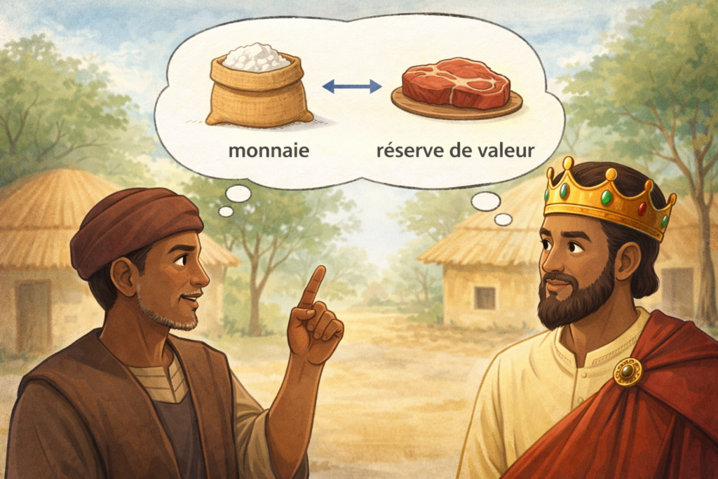 En clair, si tu possèdes un sac de sel, tu peux l’échanger contre une quantité déterminée de viande ou de bétail, selon les règles fixées par la maison royale.