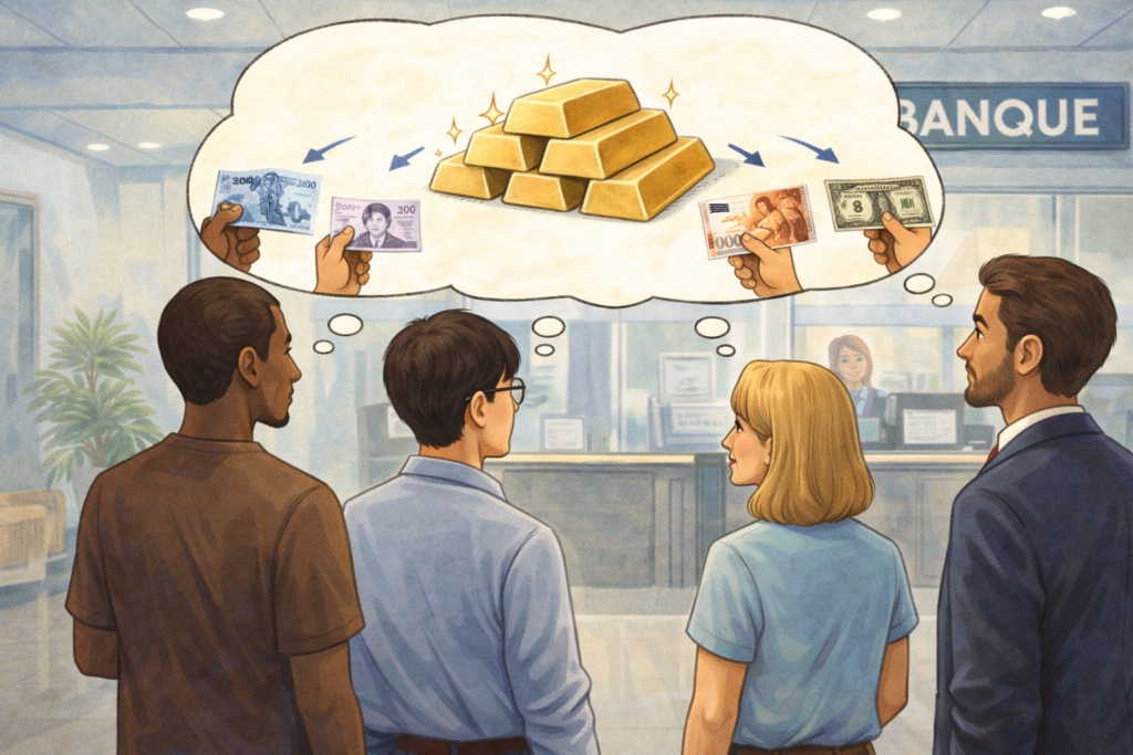 Aujourd’hui, tu ne peux plus échanger tes billets contre de l’or auprès des banques ou des autorités. Pourtant, ces billets continuent d’avoir de la valeur.