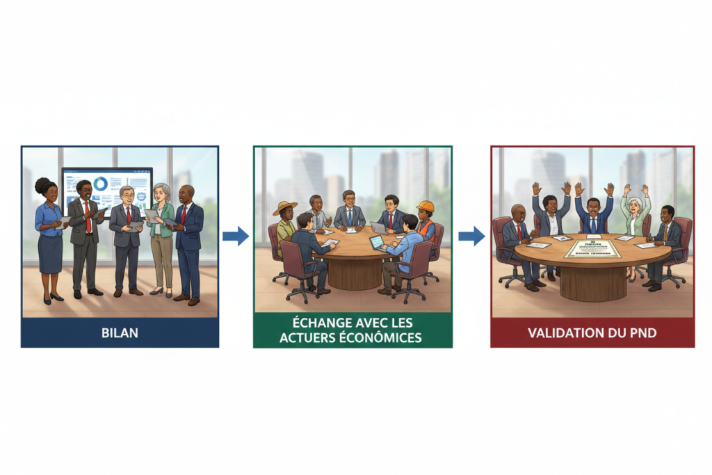 Un Plan National de Développement (PND) est un document qui contient des projets sur 5 ans pour améliorer l’économie d’un pays et les conditions de vie de ses populations. Pour écrire ce document, le gouvernement fait un bilan des années précédentes et échange avec les représentants de ceux qu’on appelle les acteurs économiques (les entreprises, la société civile, et la population). En échangeant avec ces acteurs, le gouvernement prend en compte les besoins et ajuste son plan pour que tout le monde profite des bénéfices de ce que l’exécution de ce plan apportera. Bien ! Maintenant, on va parler spécifiquement de la Côte d’Ivoire et de son PND 2026-2030.